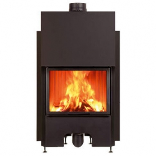 Дровяная каминная топка с металлической структурой и очагом из огнеупорной керамики. Топка с высоким КПД и низким показателем выброса продуктов горения в атмосферу, характерен сниженный расход топлива и всегда чистое стекло. Модель с плоским стеклом и лифтовым подъемом дверцы.