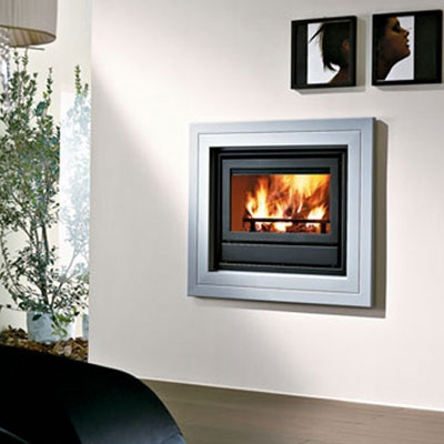 Каминная рамка из лакированной стали темно-серого цвета.