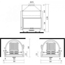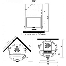 Угловой печь-камин с задним нижним подключением 2 теплового класса, для больших помещений. С духовкой.