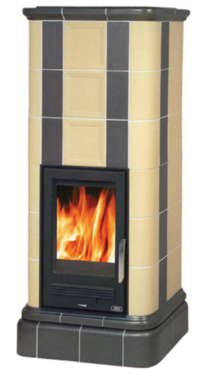 Печь Каледония имеет вытянутый корпус и облицована керамической плиткой двух цветов. Высокая эффективность чугунной топки поддержана технологией "двойного дожига", при которой каминное топливо сжигается практически без остатка. В качестве топлива используются сухие дрова длиной до 340 мм.